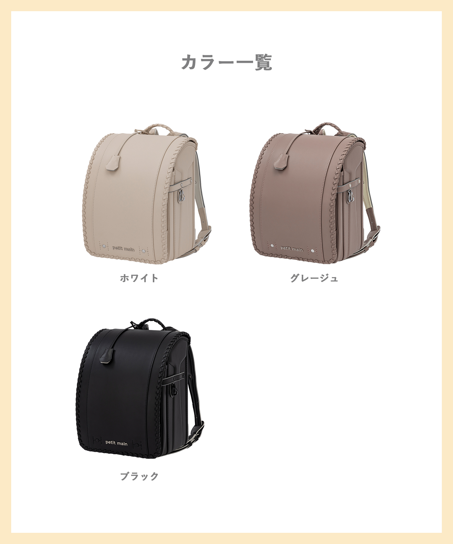 ナルミヤ・インターナショナルの子供服ブランド「petit main(プティマイン)」。トレンド感と子供らしさをあわせもつ、子供服ブランドならではのカジュアルで上質なデザインランドセル。